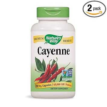 Nature S Way Cayenne 40 000 Shu Potency 180 Vegetarian Capsules Pack Of 2