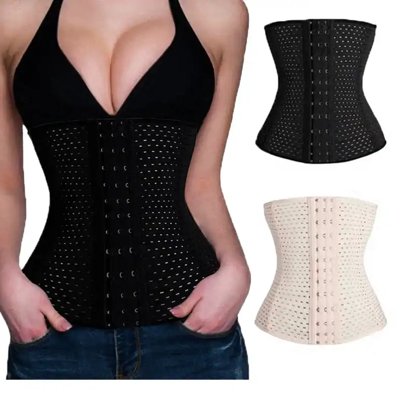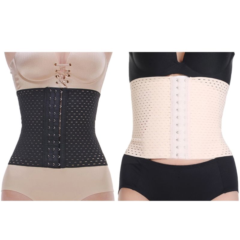 Women Waist Trainer Hook And Eye Mesh Air Hole Cincher Corset Weight Loss Short Body Shaper Latex Tummy Controller