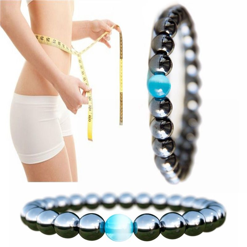 1pc Weight Loss Bracelet Round Magnetic Stone Therapy Slimming Hand Chain Hematite Stretch Magnet Bracelet Jewelry Health Care