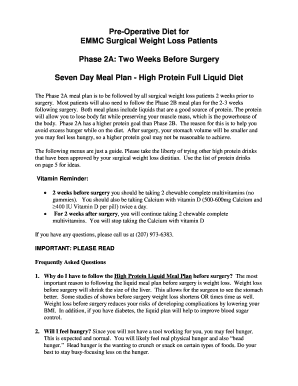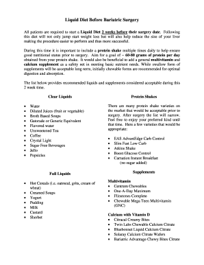 Liquid Diet Before Bariatric Surgery Fill Online Printable