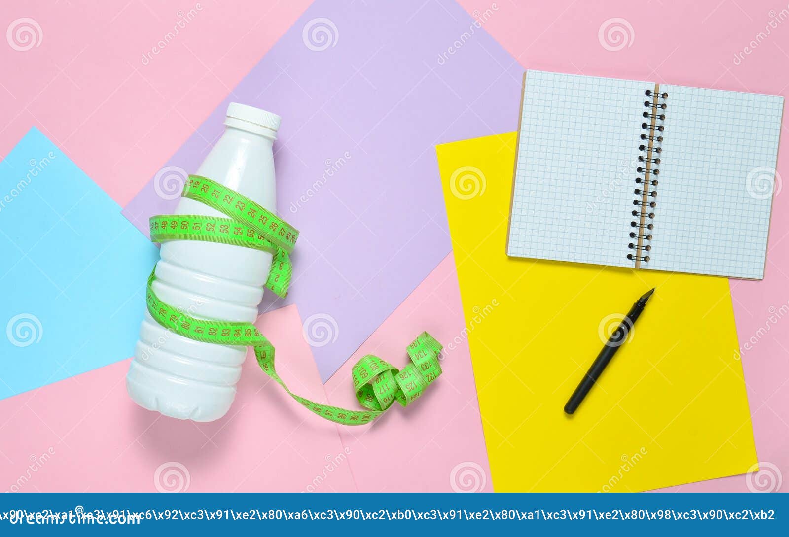 Notepad For Compiling Diet Plan Bottle Of Kefir Wrapped