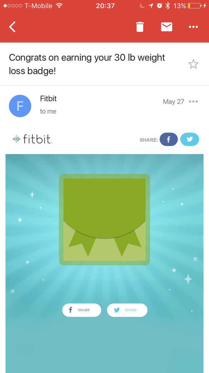 Congrats On Earning Your 30 Lb Weight Loss Badge Chris