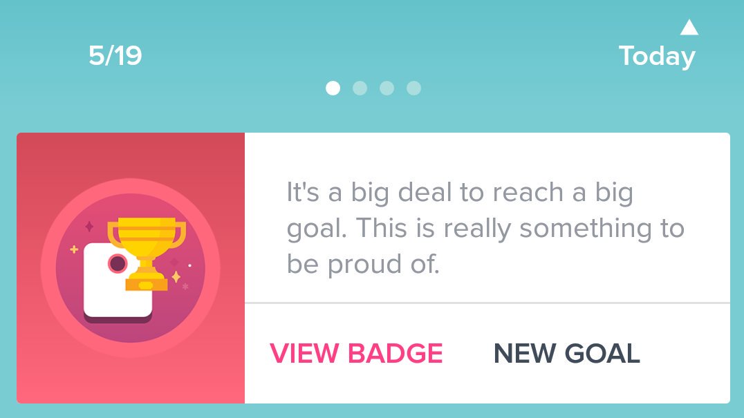 You earn badges when you lose 5 pounds or reach a weight loss goal.