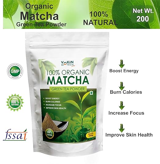 Vokin Biotech Organic Matcha Green Tea Powder All Natural Weight Loss Metabolism Booster 200 Gm Unflavoured