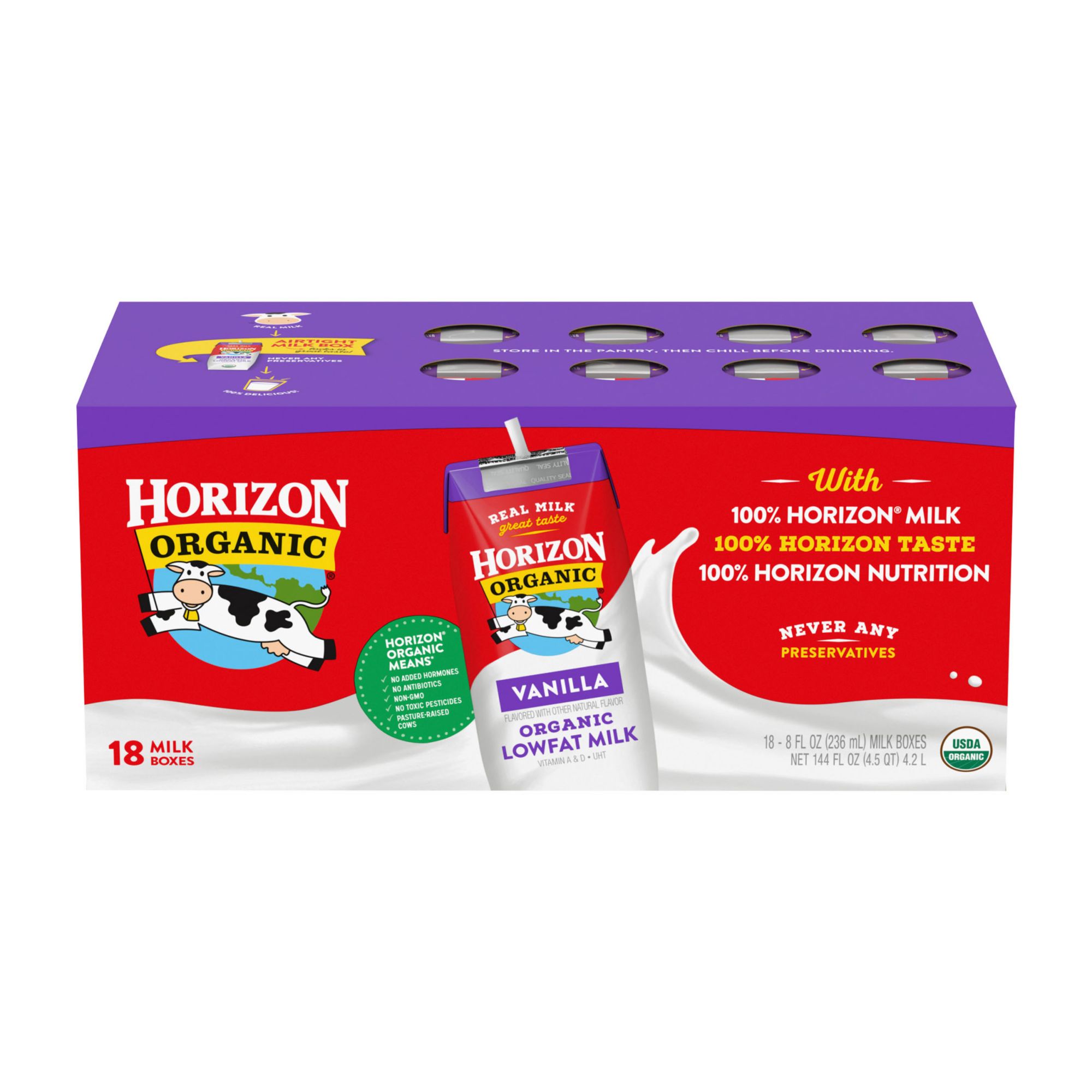 Horizon Organic Vanilla Low Fat Milk 18 Pk 8 Oz