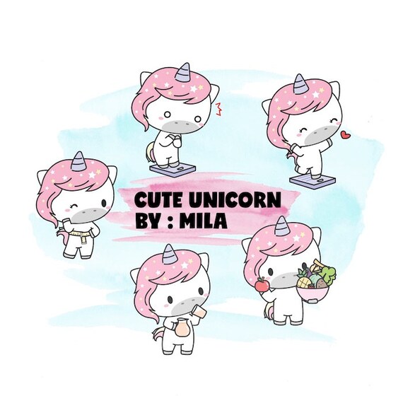 Kawaii Unicorn Weight Loss Planner Clipart