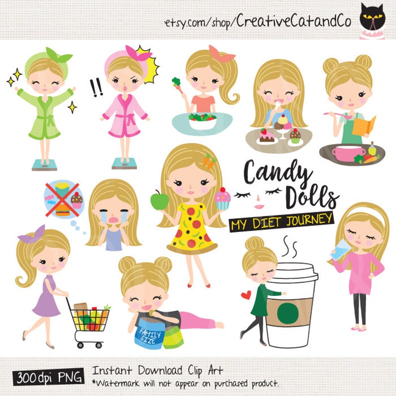 Charm Girls Weight Loss Clipart Cute But Functional Digital Graphics Great For Create Planner Stickers With Cut Machines Commercial Use Ok