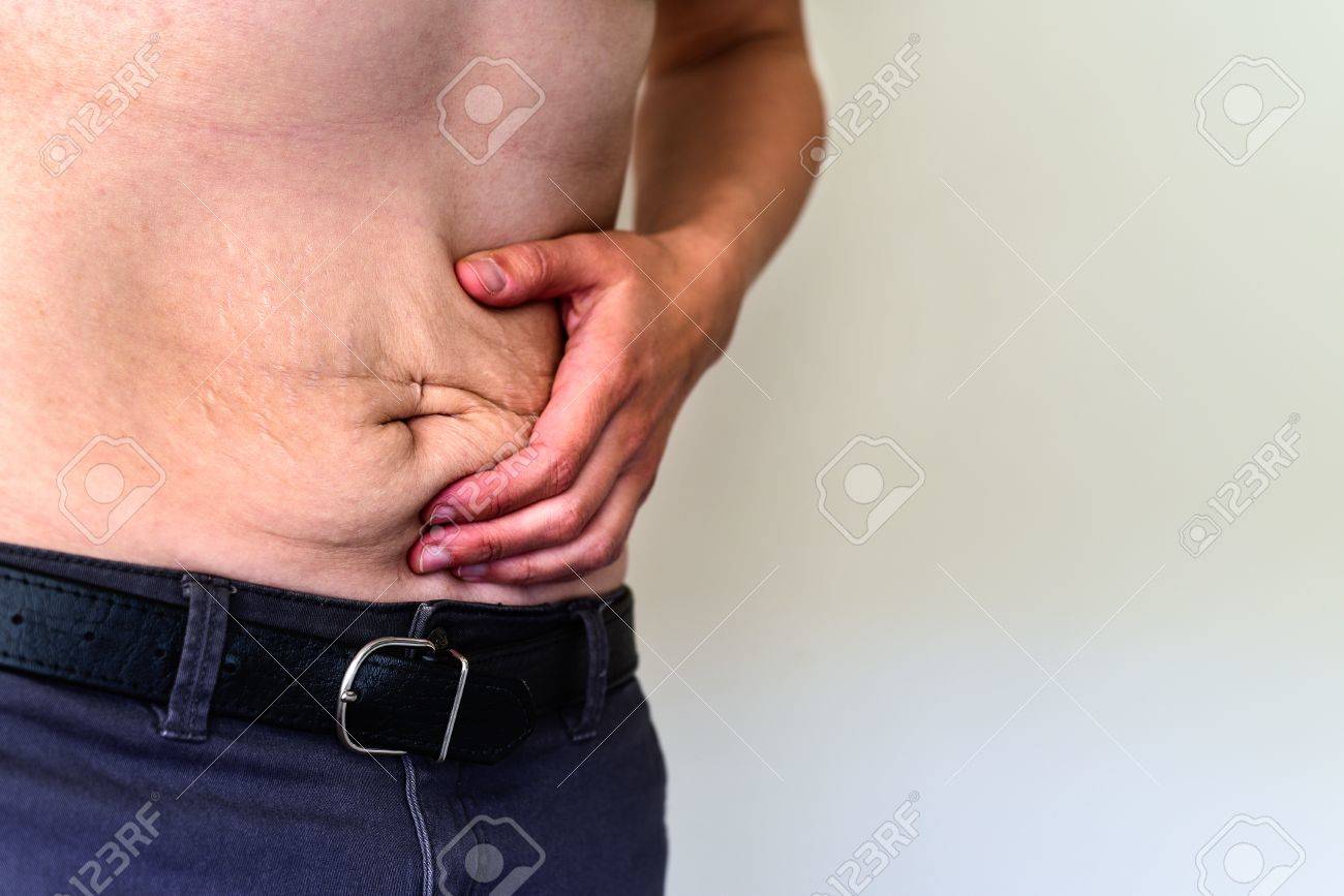 Woman Belly With Stretch Marks And Scars After Pregnancy Weight