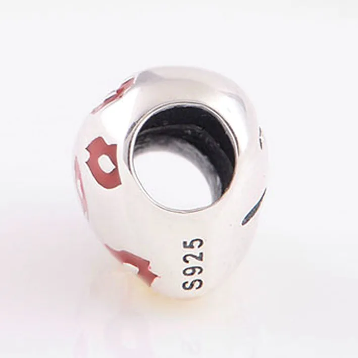 2015 New 925 Sterling Silver Heart Bead Enamel Lip Charm