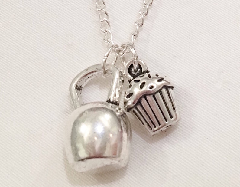 Fitness Necklace Cupcake Charm Kettlebell Jewelry Dumbbell Necklace Workout Jewelry Weightloss Gifts Crossfit Weightlifting Gifts