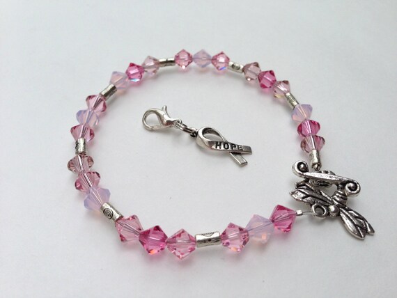 Gift Idea Breast Cancer Weight Loss Jewelry Weight Watchers Pink Swarovski Beads Hope Ribbon Charm