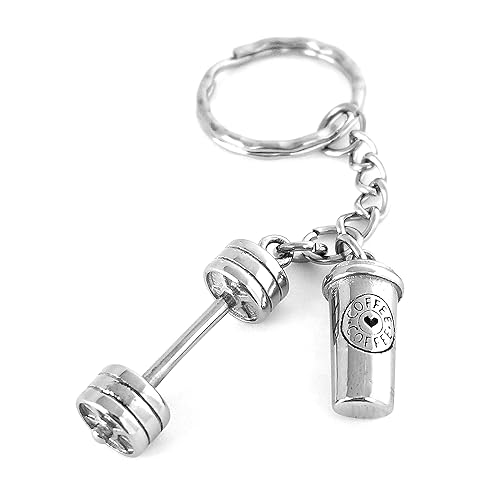 Amazon Com Barbell And Coffee Keychain Stainless Steel