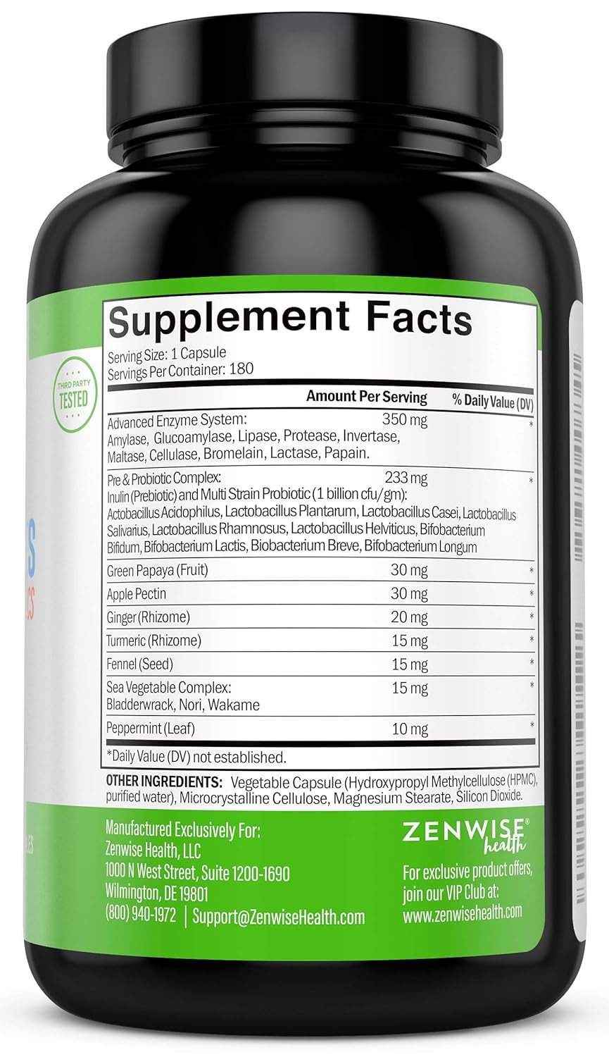 Zenwise Health Digestive Enzymes Plus Prebiotics Probiotics Natural Support For Better Digestion Lactose Absorption For Bloating