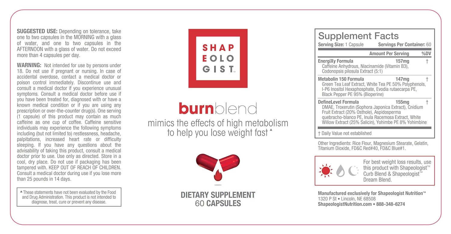 Shapeologist Burn Blend Men S And Women S Thermogenic Weight Loss Supplement Boost Energy And Metabolism Appetite Suppressant 60 Capsules