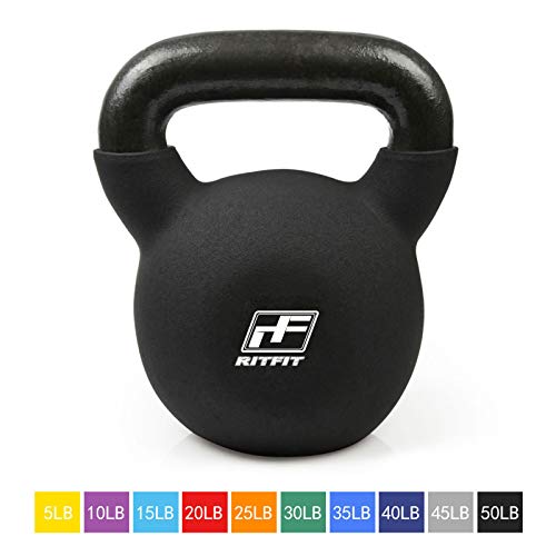 Ritfit Neoprene Coated Solid Cast Iron Kettlebell Great For Full Body Workout Cross Training Weight Loss Strength Training