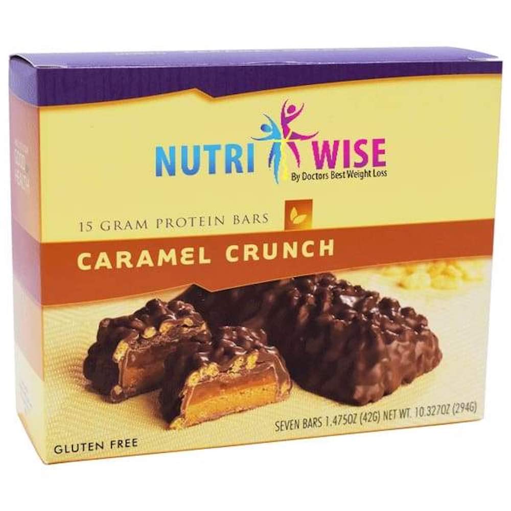 Nutriwise Caramel Crunch Diet Protein Bars High Protein Gluten Free Low Cholesterol Trans Fat Free High Iron 7 Box