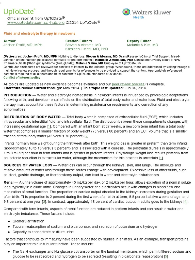 Fluid And Electrolyte Therapy In Newborns Pdf Kidney