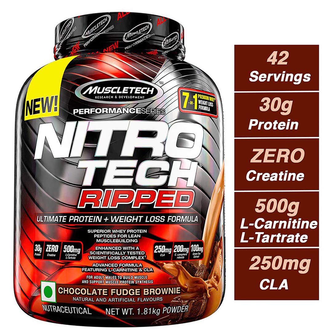 Muscletech Nitro Tech Ripped Ultra Clean Whey Protein Isolate Powder Weight Loss Formula Low Sugar Low Carb Chocolate Fudge Brownie 4 Pounds
