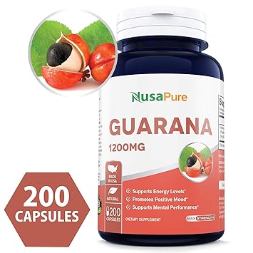 Best Guarana Extract 1200mg 200caps Non Gmo Gluten Free Slow Release Natural Coffee Caffeine