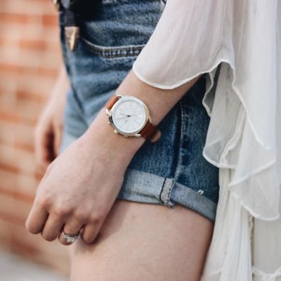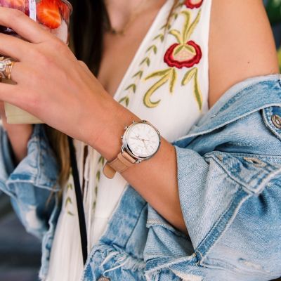 Fossil Q Women S Accomplice Sand Leather Strap Hybrid Smart Watch 38x40mm Brown Actresses Womens Watches Luxury Rose Gold Apple Watch Beautiful Watches